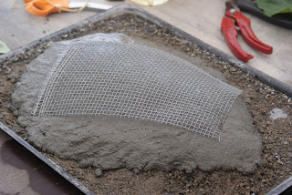 Når betongen har tørket kan du fjerne plasthanskene, og pusse betongen.