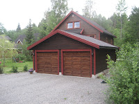 Vi har grønt marmorbord og lysblå sofa.